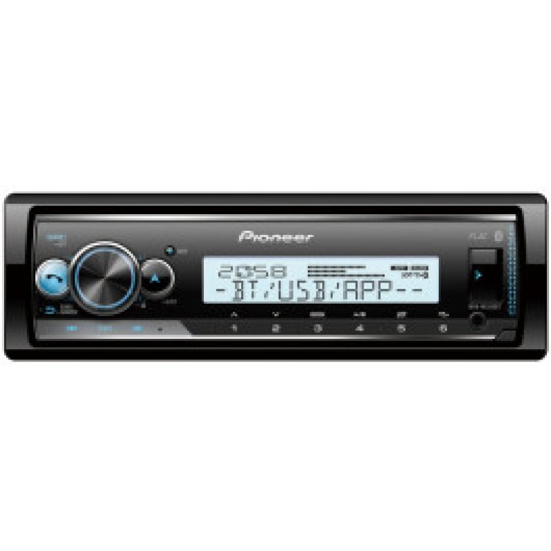Hlavní jednotka 1-DIN Marine. Bluetooth, USB, Spotify, vícebarevné osvětlení a MIXTRAX. Lze připojit k zařízením iPhone a Android.